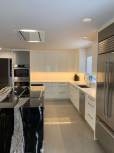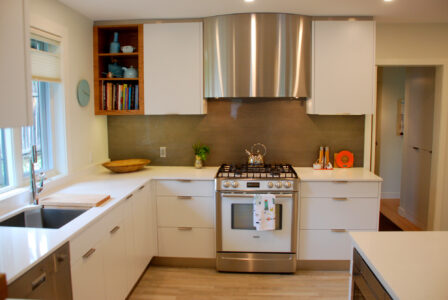 A contemporary kitchen can have a focal point without getting loud, and a custom canopy hood, done right, anchors the room while keeping the lines sharp, minimal, and modern.