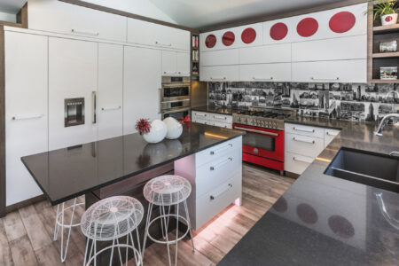 There’s something irresistible about a kitchen that feels like it could host a late-night conversation over espresso and crème brûlée. These high-gloss red cabinets bring that bold, French-bistro charm — dramatic, confident, and just a little mischievous. Paired with...
