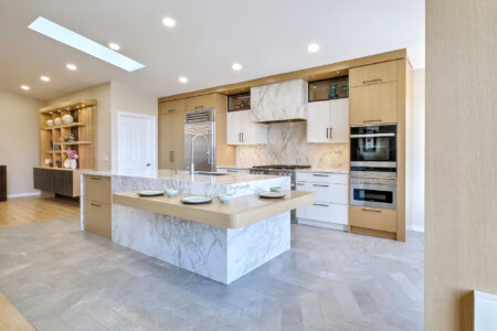 The perfect balance of classic and contemporary. Transitional kitchens blend the warmth of traditional design with the clean lines of modern aesthetics. Think shaker-style cabinets, neutral color palettes, subtle hardware, mixed metals, and natural stone countertops. This versatile style offers comfort without formality and sleekness without sterility — currently the most popular choice for modern families seeking timeless yet updated kitchens.
