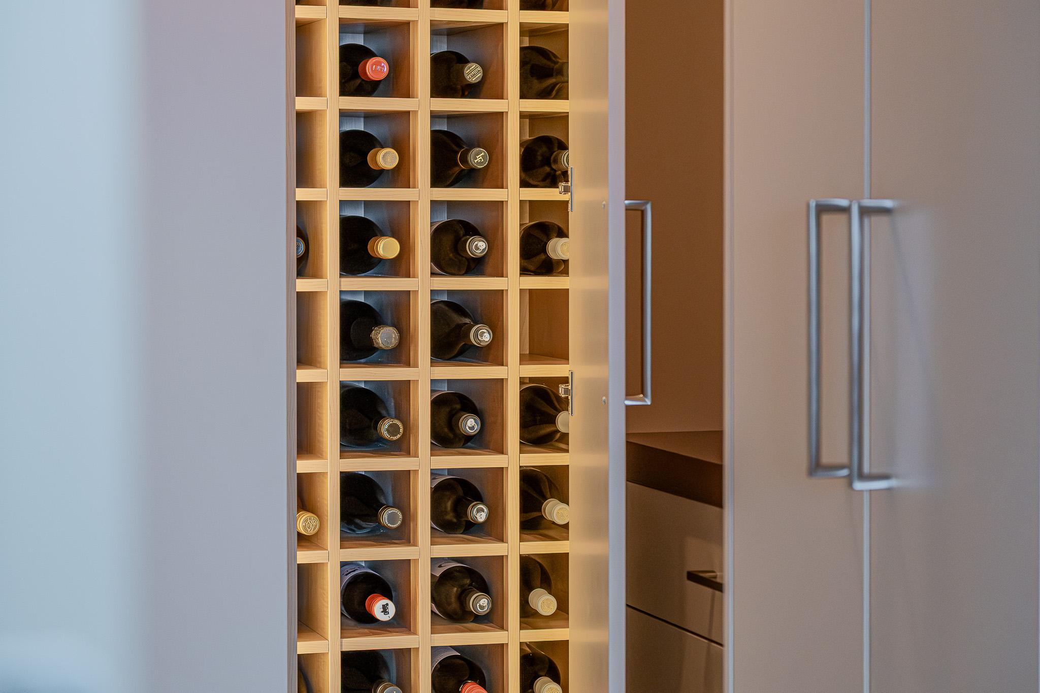 A closer look at the Cochrane kitchen that blends Dekton Bergen, warm oak, premium appliances, and integrated lighting into one effortlessly elevated space.