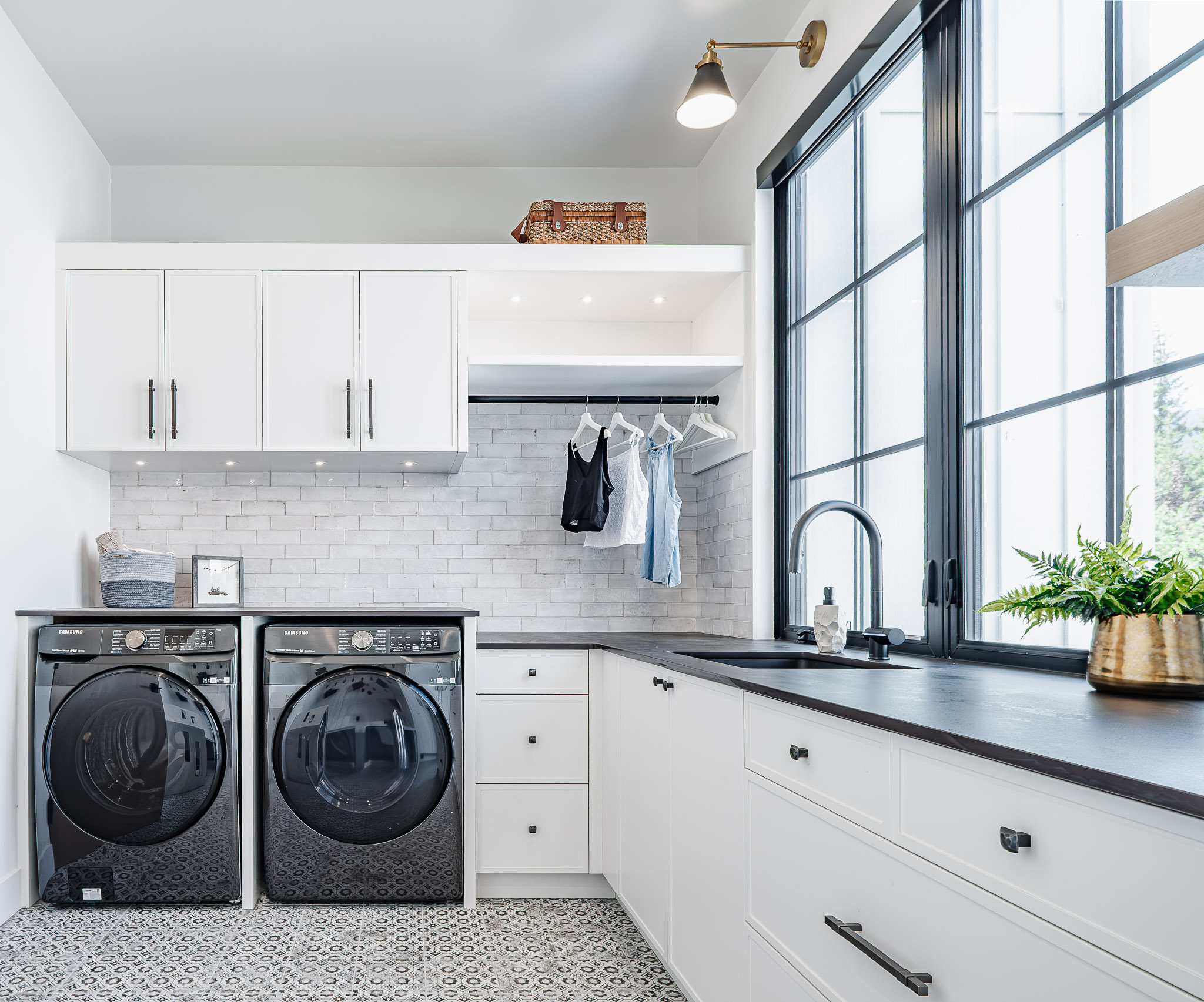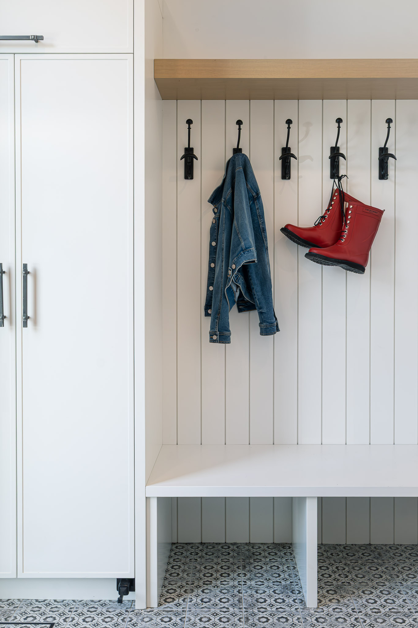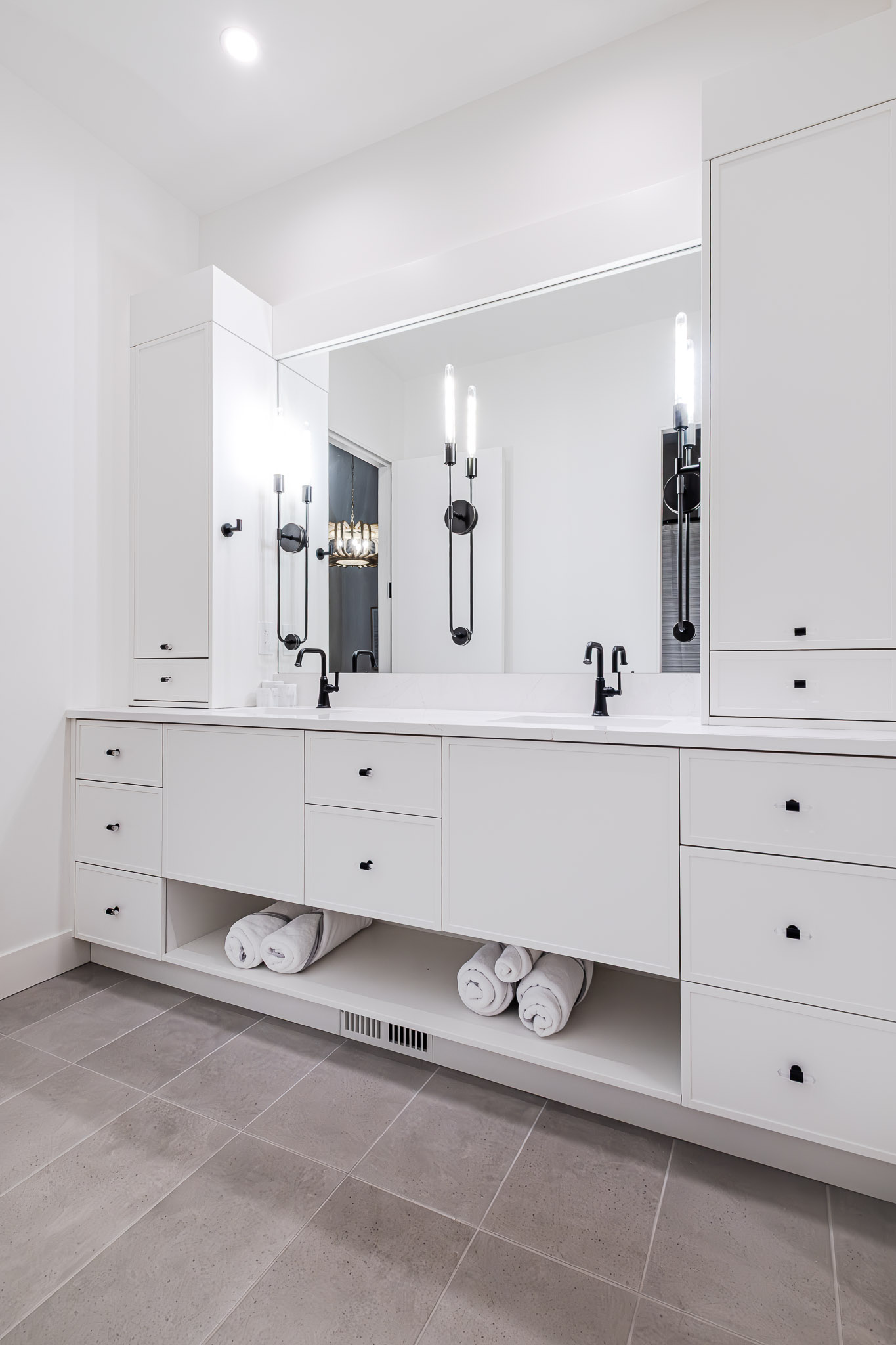 From a toe-kick dog bowl drawer in the pantry to a pocket door system in the office that conceals yoga mats and linens, every space was designed with daily life in mind.